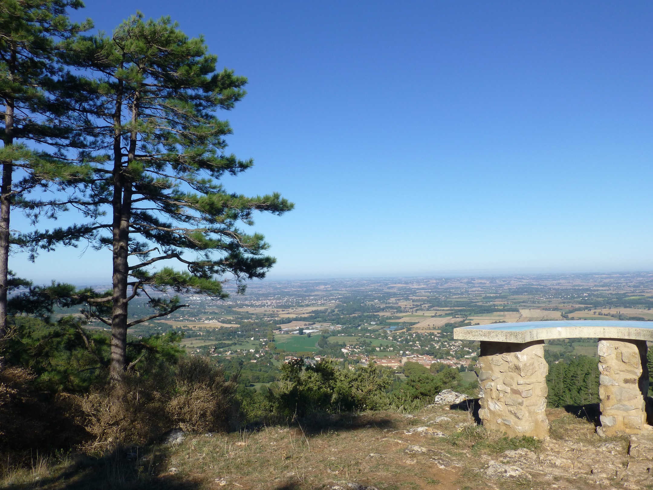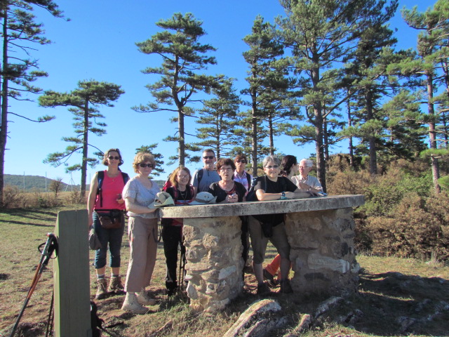 Notre balade naturaliste, organisée et encadrée par Georges, a débuté dans le village de Sorèze, au pied de la Montagne Noire, pointe sud-occidentale du Massif central qui disparait à l’ouest sous les collines du Lauragais. Une petite ascension nous a conduits au causse de Sorèze où du Belvédère de La Fendeille à 539m, une vue magnifique s’ouvre sur toute la plaine du Lauragais. Puis c’est en empruntant le sentier karstique jalonné de panneaux informatifs que nous avons parcouru le causse de Sorèze. Ce petit massif calcaire de 3km2 est traversé de part en part par une rivière souterraine qui a creusé de nombreuses grottes et modelé le relief à la surface. Avens, dolines, failles et grottes se succèdent pour le plus grand bonheur des spéléologues et des archéologues qui explorent ce patrimoine local. En effet, la région est aussi très riche du point de vue historique, puisque de la Préhistoire à nos jours, les traces d’occupation humaine sont nombreuses : l’oppidum sur la montagne de Berniquaut à l’âge du bronze, l’extraction du fer dans la grotte du Calel au Moyen Age, l’École Militaire de Sorèze dès la fin du XVIème siècle… Variété aussi de la végétation, la garrigue sur les calcaires du causse où nous avons pu admirer la petite orchidée « La Spiranthe d’automne », puis en parcourant les pentes boisées, des chênes, hêtres et conifères. Et dans une magnifique clairière se situe le site de Saint Jammes où les vestiges d’une chapelle préromane du XIème siècle côtoient un hêtre vieux de 450 ans classé « arbre remarquable ». Une bien belle promenade qui, sous un soleil d’automne radieux, nous a permis de découvrir quelques richesses de la région.